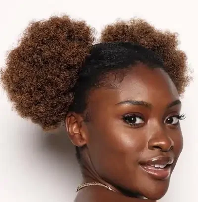 A timeless and fun style for any occasion. Simply gather the hair into two high ponytails and secure it with elastics. Fluff up the hair for a classic afro puff look.